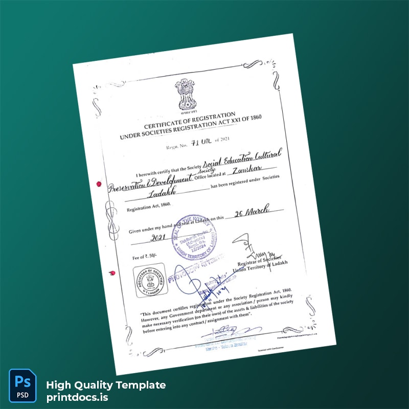 Printable India Registrar of Societies Society Registration Certificate Template: Effortless Editing and Professional Results