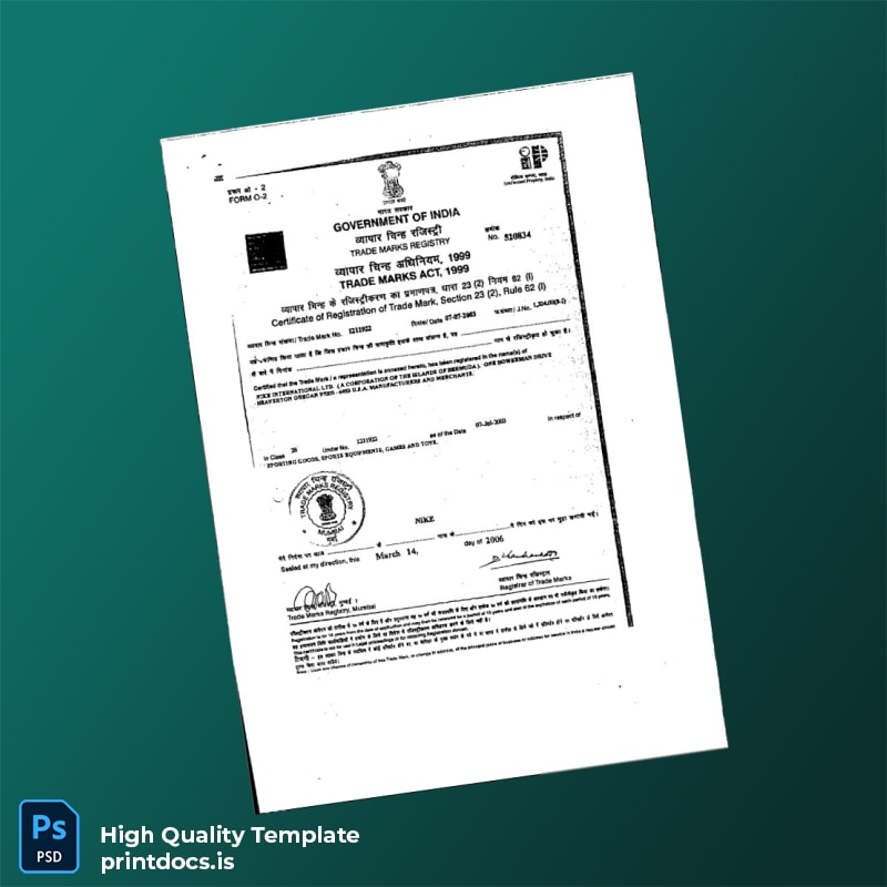 Editable India Trade Marks Registry Certificate Template for Seamless Business Registration