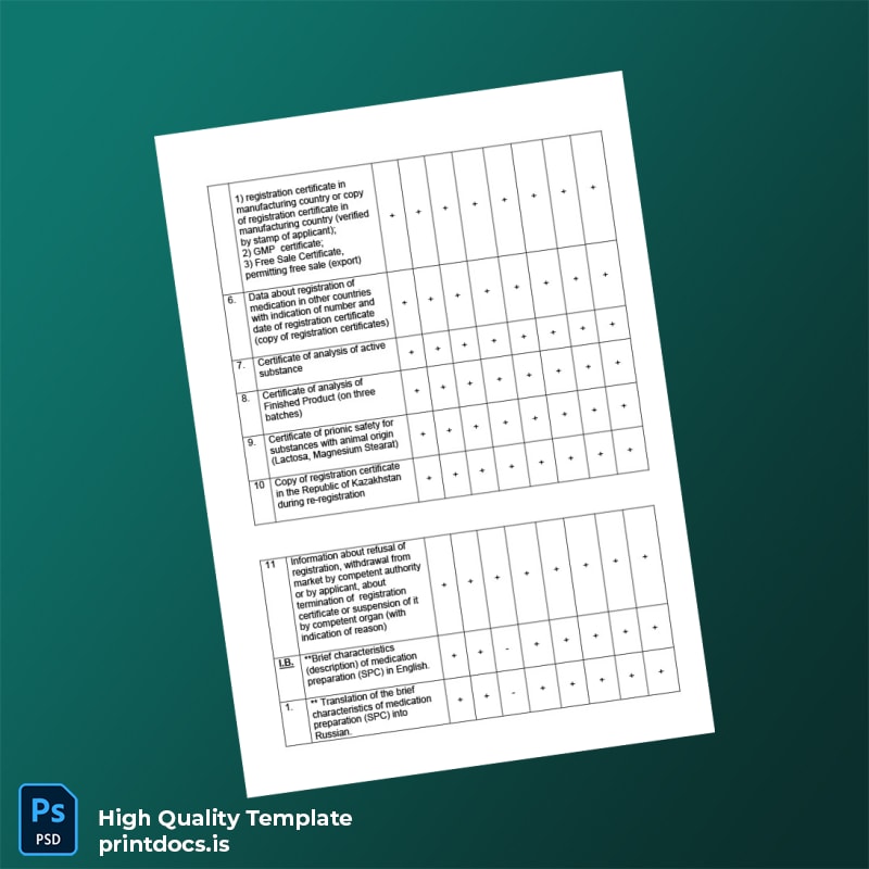 Ensure your business documentation is always up-to-date and professionally presented with this versatile Kazakhstan Ministry of Health Registration Certificate Template available in both Word and PDF formats. Designed to accommodate the specific needs of business owners and professionals who require quick and efficient solutions for document updating and replacement, this template offers a dependable option to maintain regulatory compliance with ease.