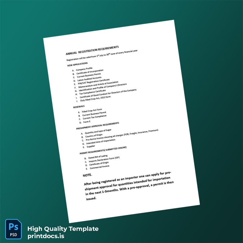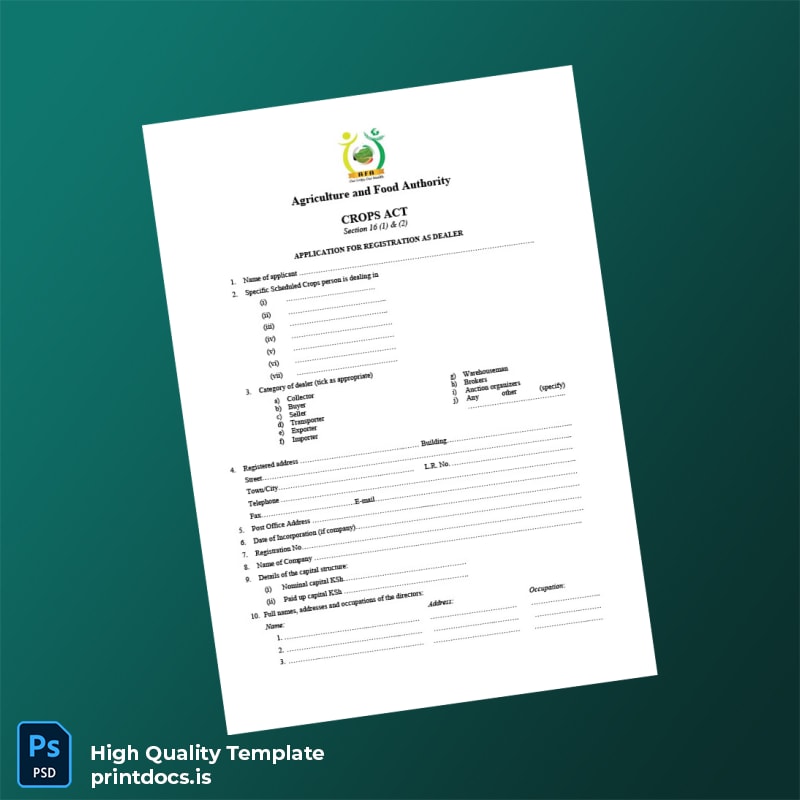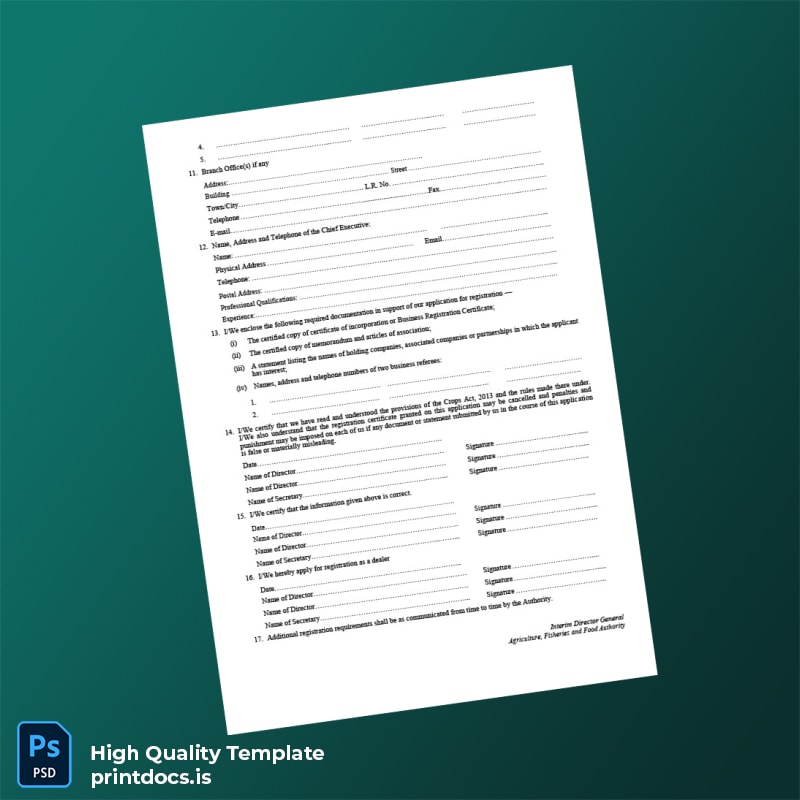 Kenya Agriculture and Food Authority Registration Certificate Template (Word & PDF)