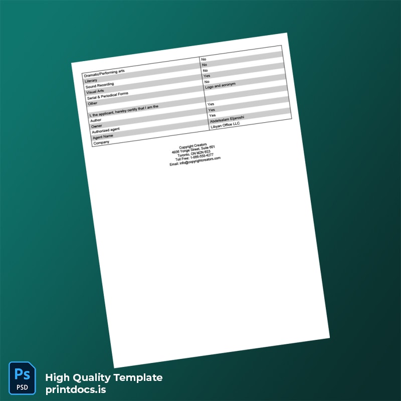Editable Libyan Arab Jamahiriya Copyright Registration Certificate Template (Word & PDF) Designed for Professionals