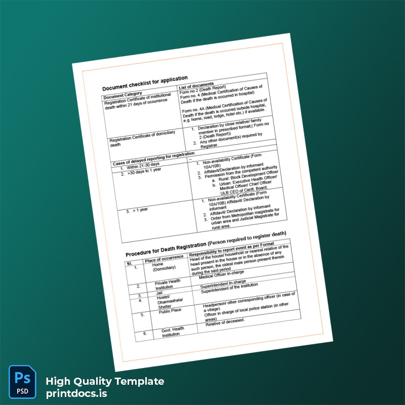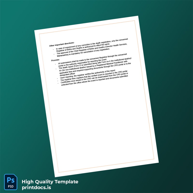 Be the first to review “Printable Maharashtra Public Health Department Death Registration Certificate Template (Word & PDF) 4 page”
