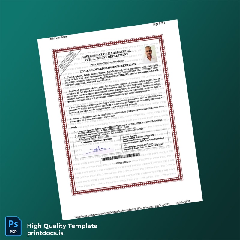 Efficiently Manage Your Contractor Registration with the Maharashtra Public Works Department Certificate Template