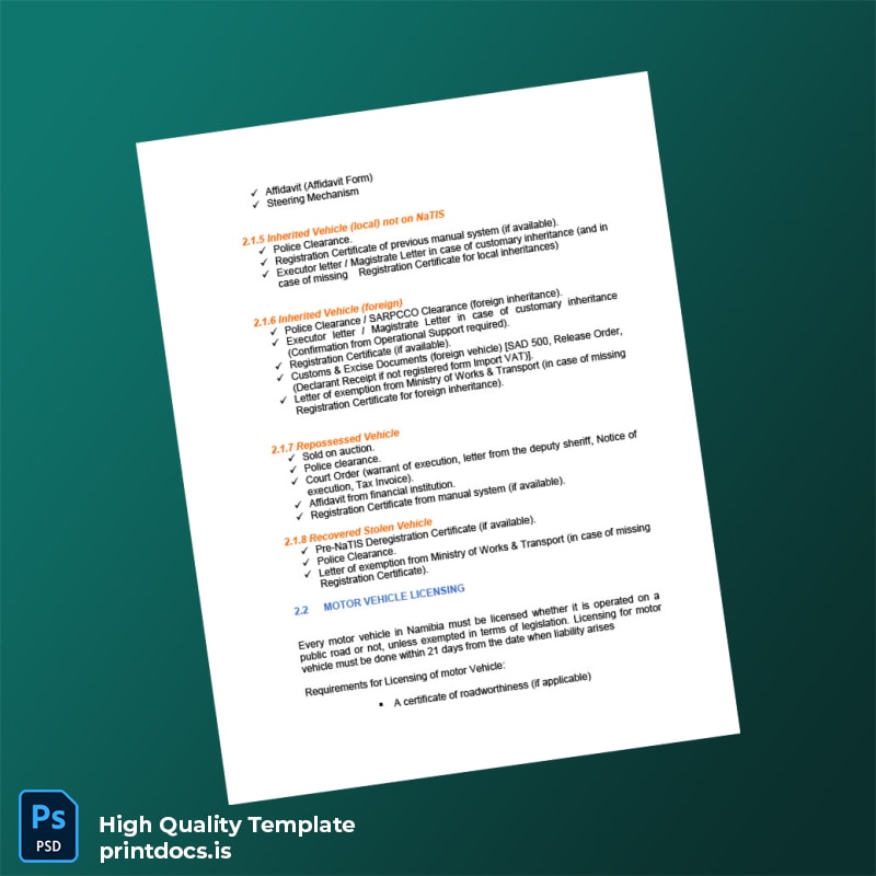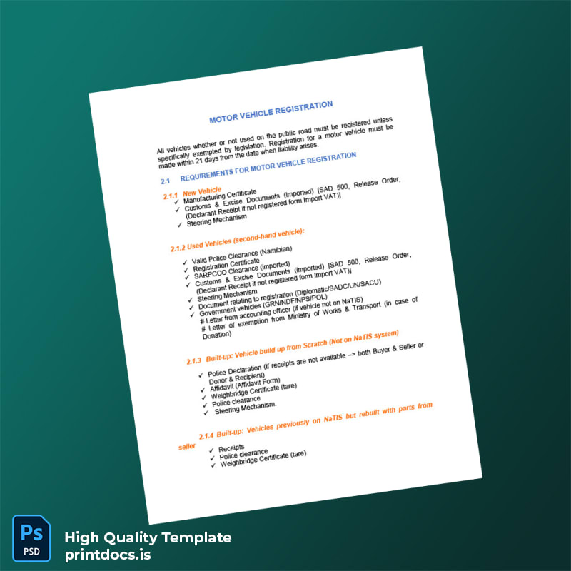 Be the first to review “Printable Namibia Ministry of Transport Motor Vehicle Registration Guide Template (Word & PDF) 3 page”