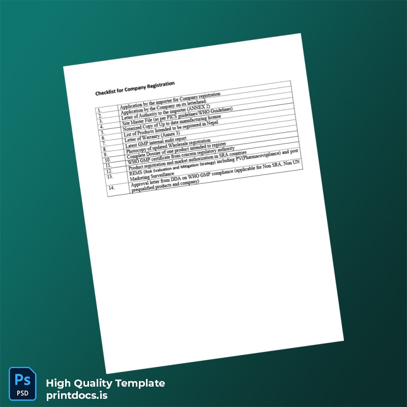 Take control of your company registration documentation today. Download the Nepal Ministry of Commerce Company Registration Checklist Template in Word and PDF format, customize it effortlessly, and print a clean, official certificate that meets all your professional needs.