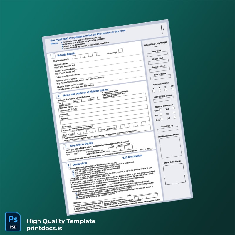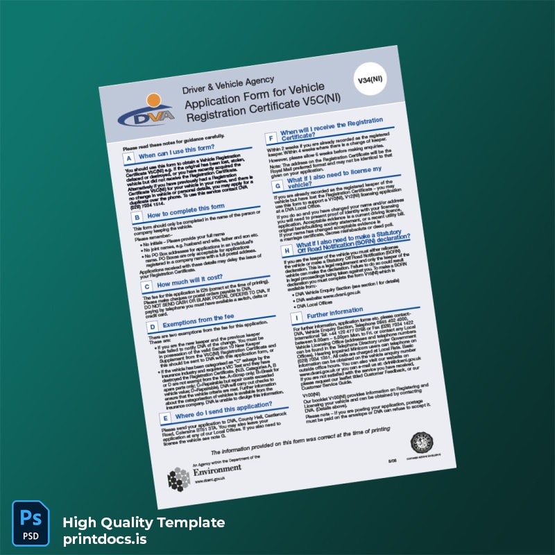 Simplify Your Vehicle Registration with Our Editable Northern Ireland Vehicle Registration Certificate Template