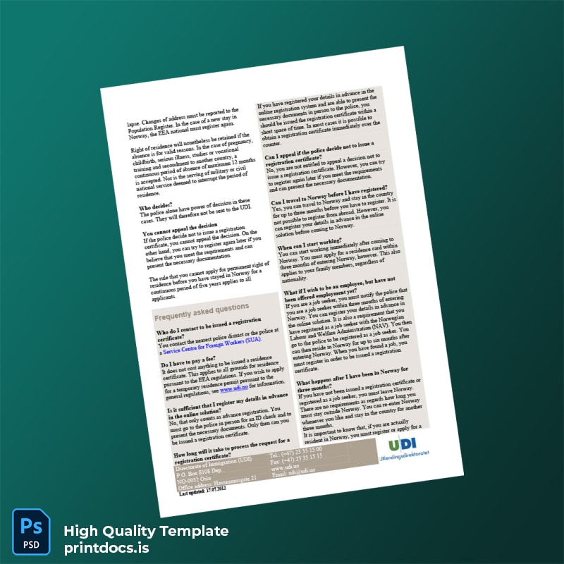 Editable Norway Police Registration Certificate Template for Swift and Professional Use