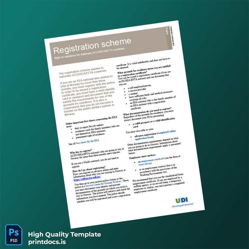 Imagine recovering from a sudden document emergency without the usual administrative hassle. Our template provides an intuitive design optimized for immediate personalization, allowing you to modify your printable registration certificate expertly and efficiently. Users across industries have leveraged this flexible tool to recreate their official Norway police registration documents swiftly, saving valuable time and avoiding costly delays.