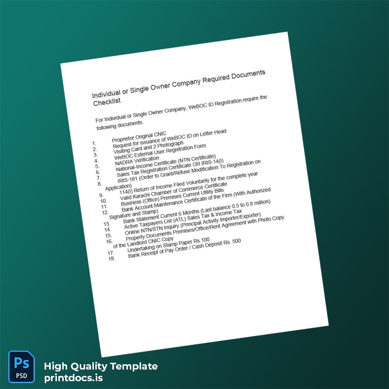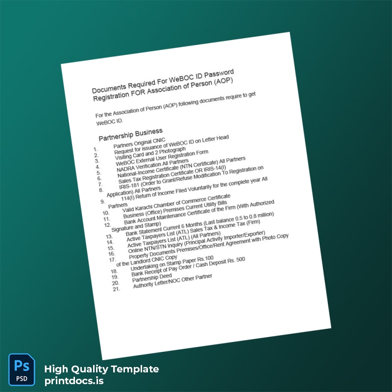Be the first to review “Printable Pakistan Customs WeBOC ID Registration Certificate Template (Word & PDF) 3 page”
