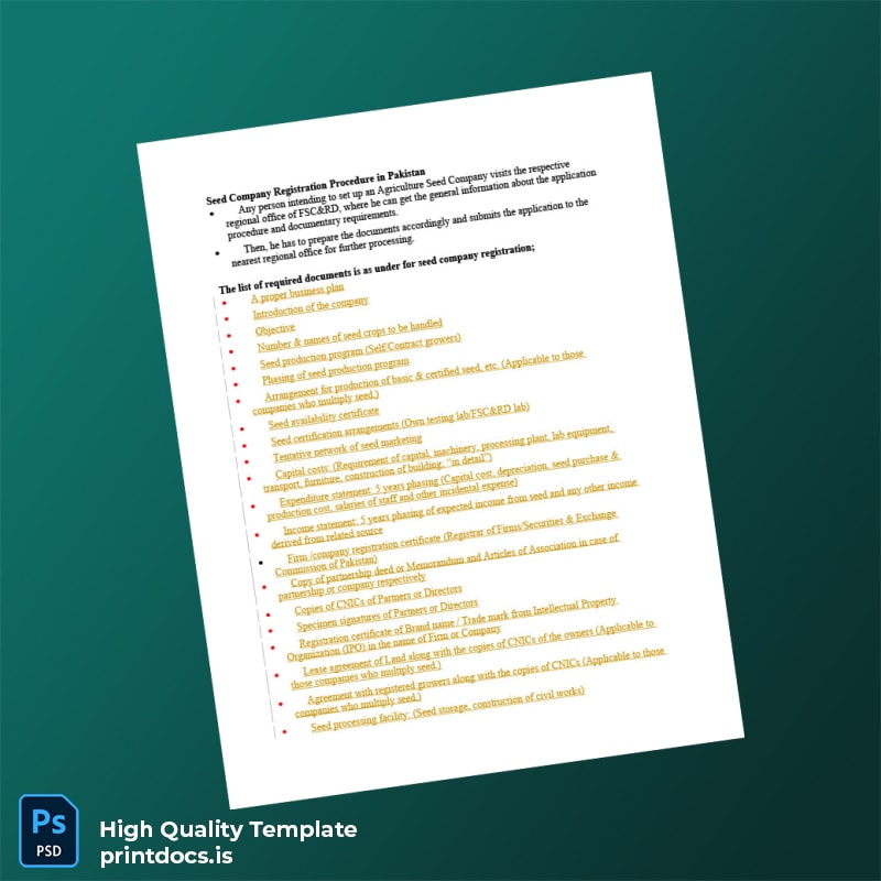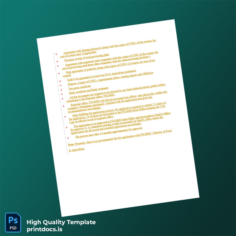 Streamline your documentation process with our Printable Pakistan Federal Seed Certification and Registration Department Seed Company Registration Certificate Template in Word and PDF f Word and PDF Template. Designed to meet professional standards, this editable registration certificate template allows you to quickly customize and print a polished certificate that complies with official requirements.
