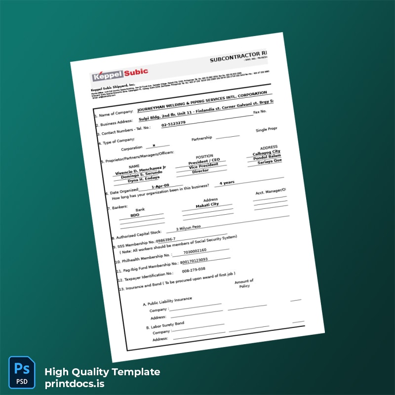 Streamline Your Subcontractor Registration with Our Editable Philippines Form Template