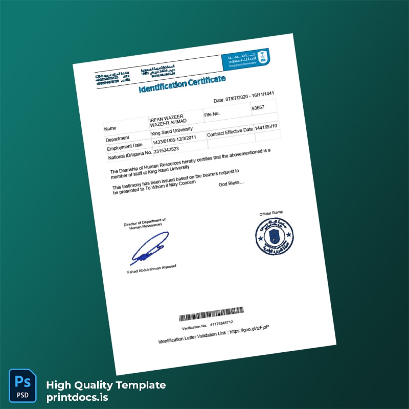 Streamline Your Employment Verification with Our Saudi Arabia King Saud University Template
