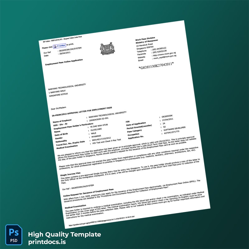 Be the first to review “Printable Singapore Nanyang Technological University Employment Verification Letter Template (Word & PDF) 8 page”