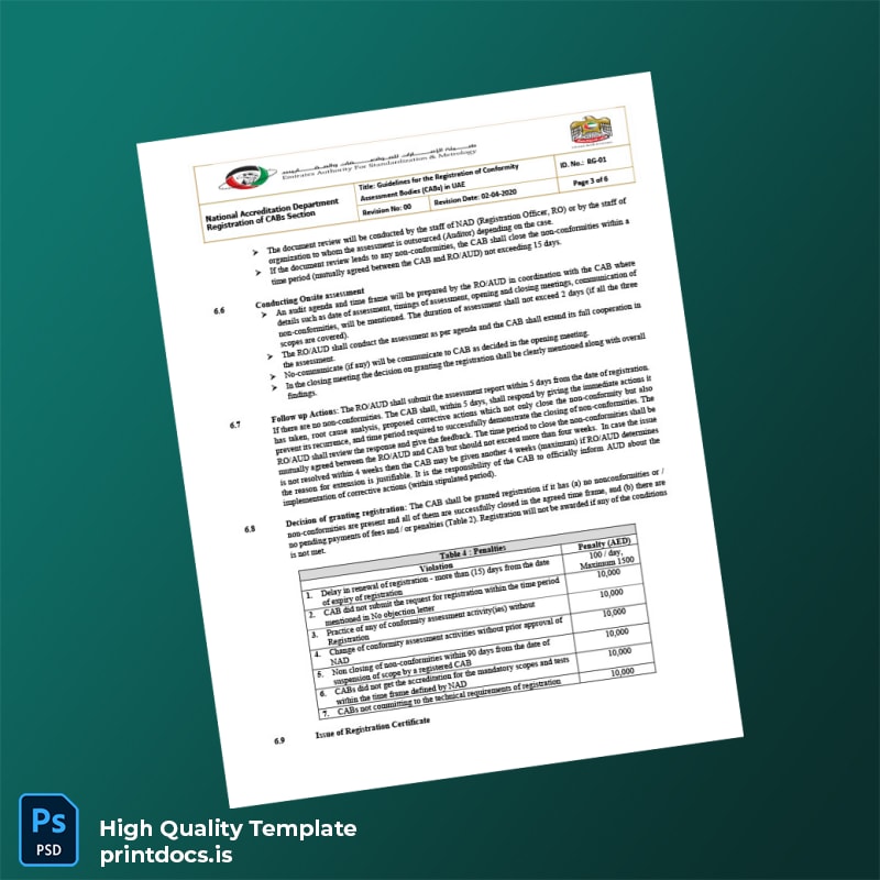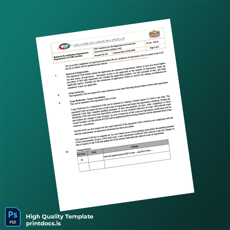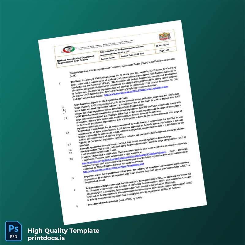 The UAE National Accreditation Department Registration Certificate Template in Word and PDF formats provides a seamless, editable solution for professionals who require a swift and reliable way to generate authentic-looking registration certificates. Crafted to meet the exacting standards of official documentation, this template empowers business owners and consultants alike to customize and print a professional certificate with ease.