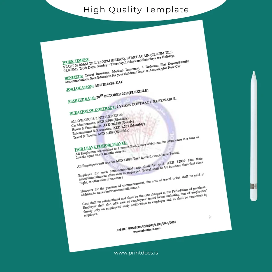 Right after purchase, download the files instantly and access them on most devices without compatibility issues. This means no delays in delivering job confirmation letters when employers or government bodies request them.