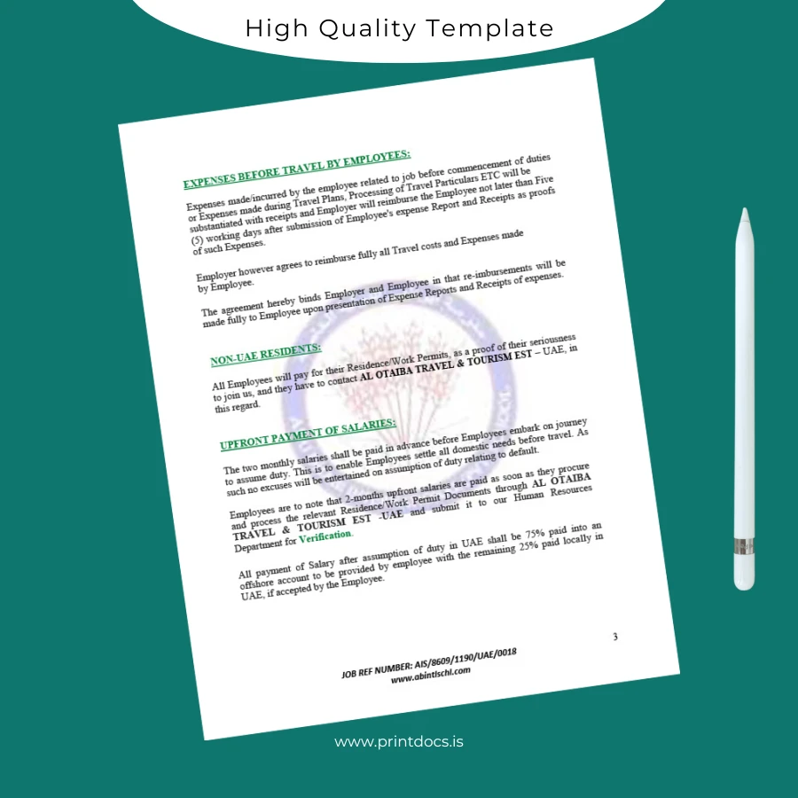 This document supports seamless editing so you can adjust name, position, duration, and contact information quickly, saving you valuable time while ensuring accuracy. Designed as a certificate of employment template, it meets stringent UAE standards and provides the clarity required for official uses.