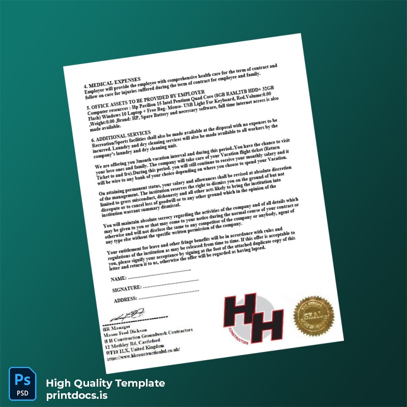 Printable United Kingdom H H Contractors Ltd Employment Verification Letter Template (Word & PDF) 2 page