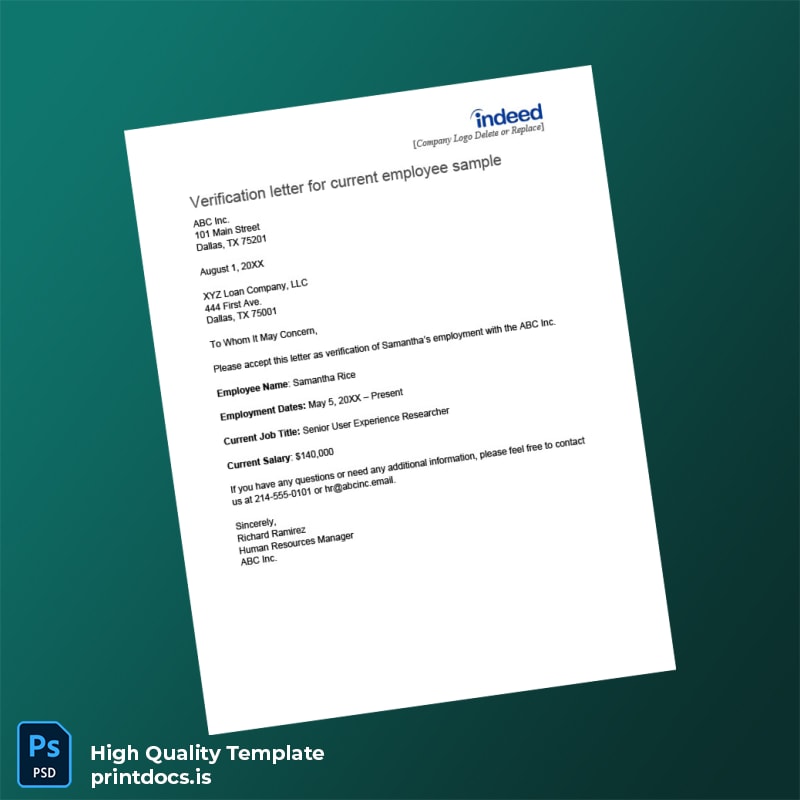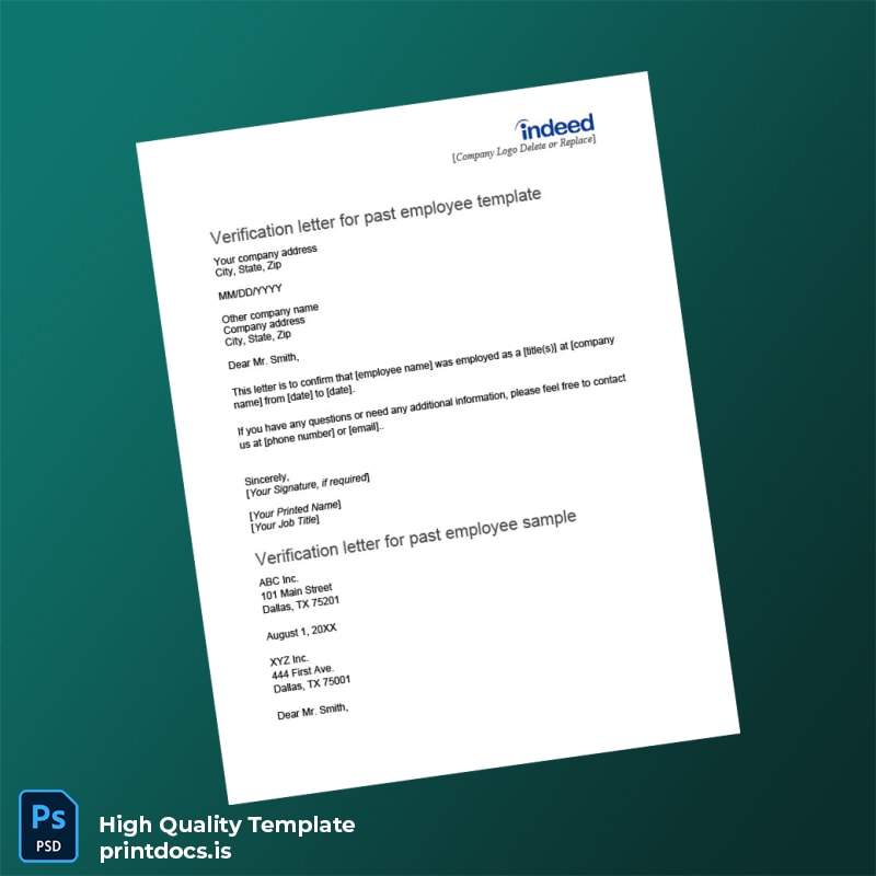 Each detail in this employment verification letter template can be easily modified—including employee name, position, dates of employment, and company details—ensuring the letter precisely fits individual requirements. The inclusion of both Word and PDF formats allows users flexibility: edit seamlessly in Word then finalize with print-ready PDF output.
