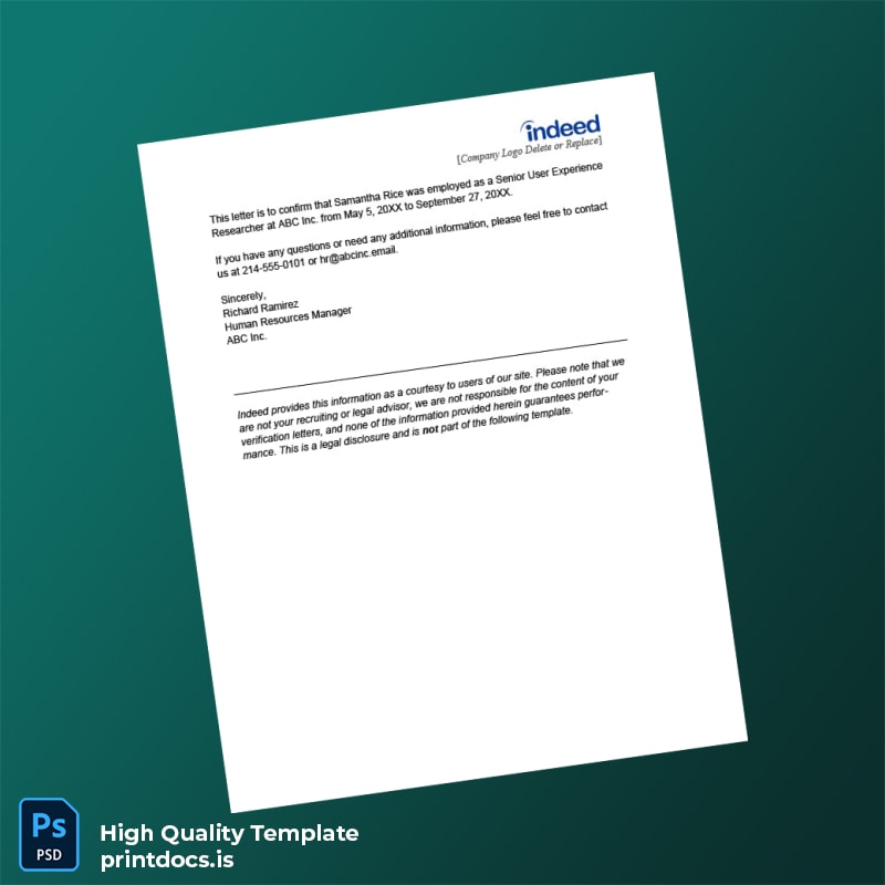 Designed with a clean, structured layout, this template supports the credibility of any employment verification. It includes all essential formatting and fonts, ensuring that printing produces a high-resolution, official appearance that clients, lenders, and institutions will trust.