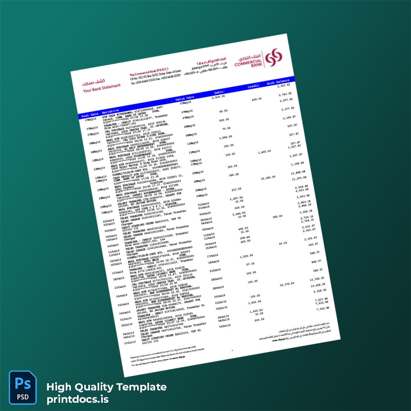 Don’t let a missing bank statement delay your professional commitments. With our Qatar Bank Statement Template, you can create a compliant document instantly. For more templates, explore our product category or check out related products like the 3 months bank statement PDF and the 6 months bank statement PDF. Experience the convenience and reliability of our templates—download yours today!