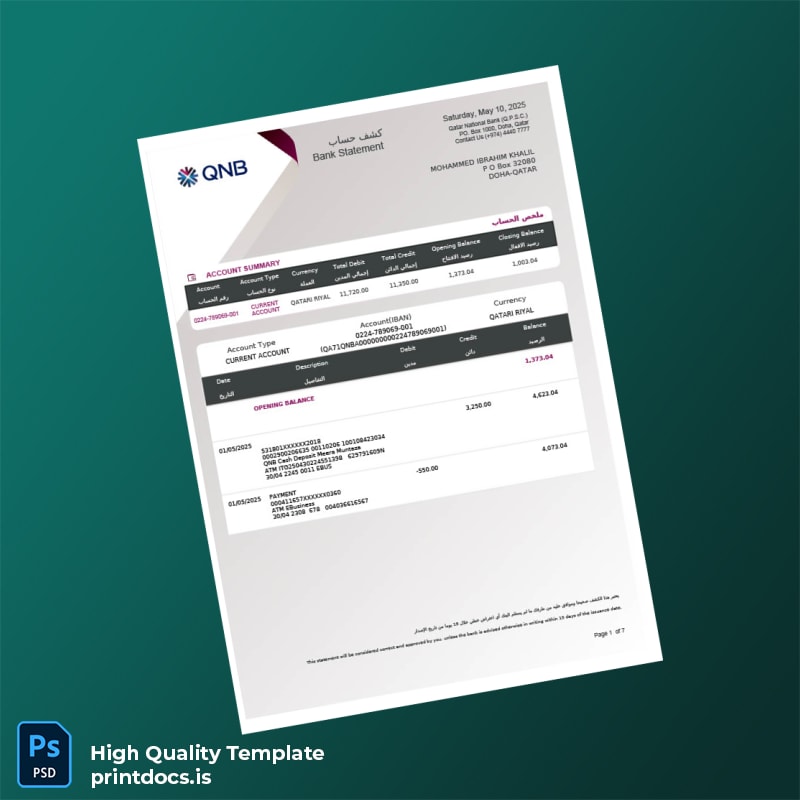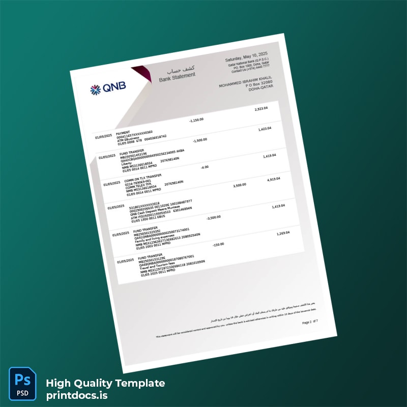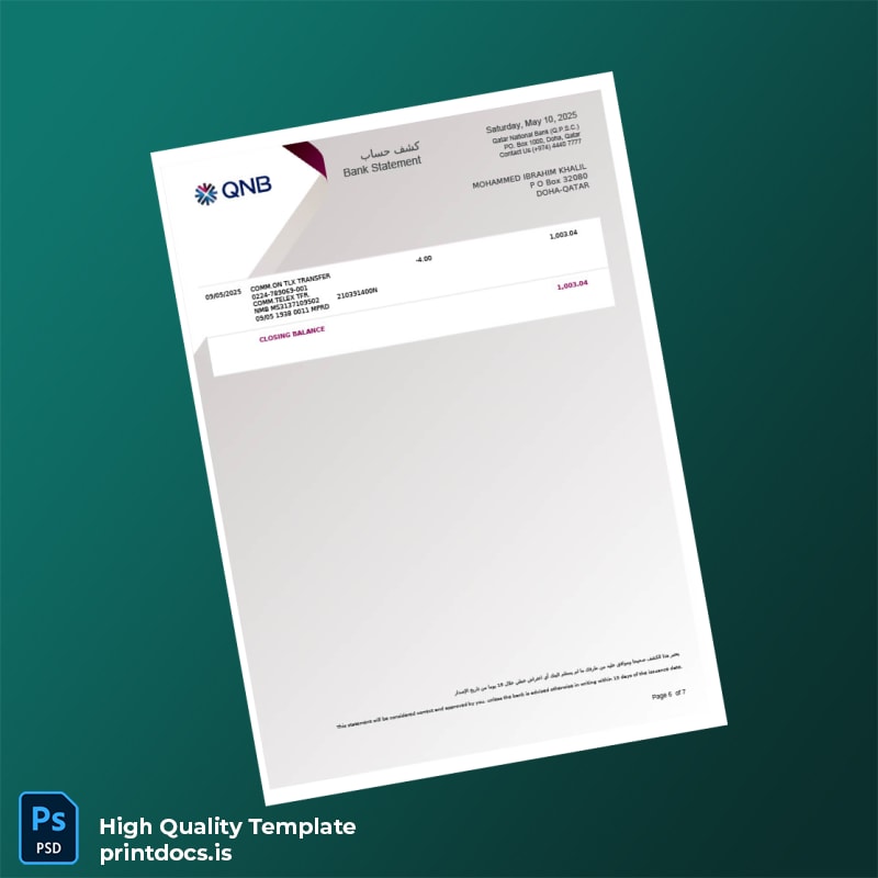 Qatar Qatar National Bank Account Statement Template in Word and PDF formats 7 page