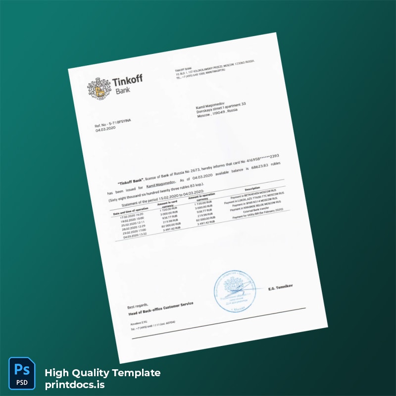 In the fast-paced world of finance, having access to reliable documentation is crucial. Whether you’ve misplaced your original documents or need a quick replacement, our Russia Tinkoff Bank Statement Template provides the perfect solution. Available in both Word and PDF formats, this template is designed for professional use, enabling swift edits and prints.