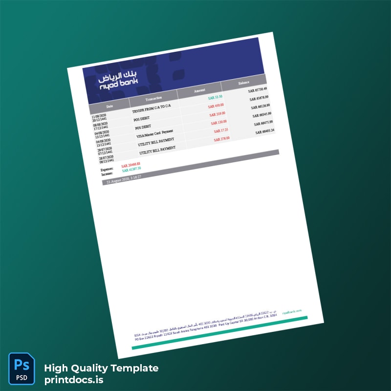Saudi Arabia Bank Editable Transaction History Template in Word and PDF Formats