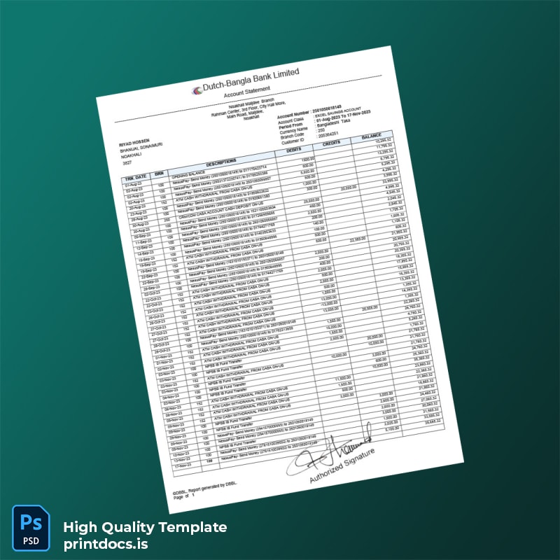 Take control of your financial documentation today. Download the Saudi Arabia Dutch-Bangla Bank Account Statement Template now and experience the convenience firsthand. For a broader range of solutions, check out our editable bank statement templates and related products tailored to meet your specific needs. For more external options, visit Bank Statement Template Collection for additional resources.