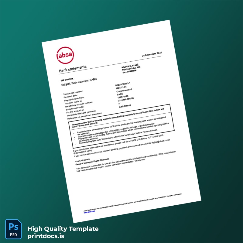 Effortless Editing with the South Africa Absa Bank Statement Template
