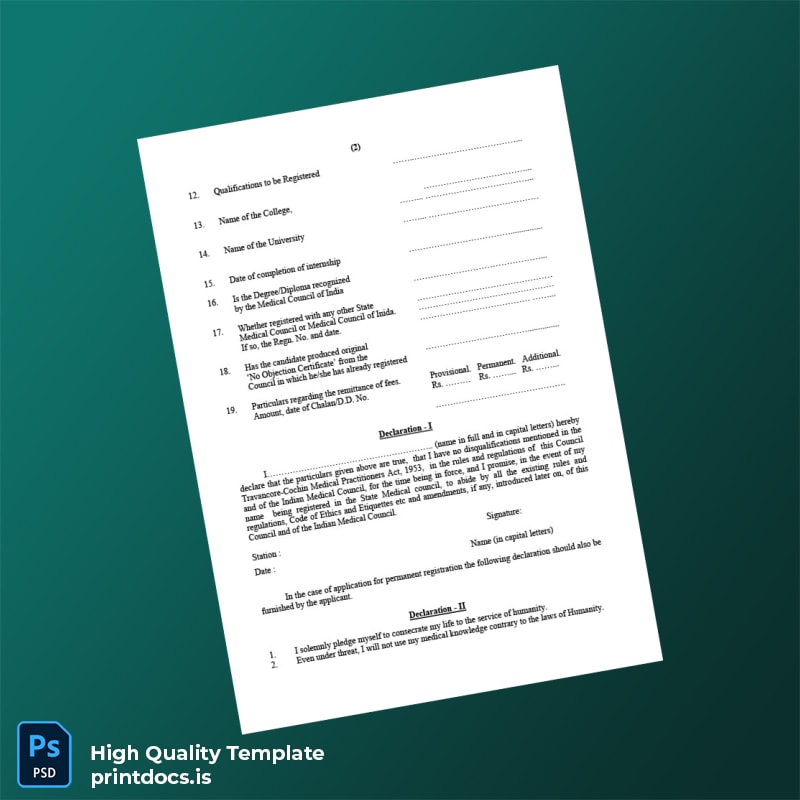 Be the first to review “Travancore-Cochin Council for Modern Medicine Registration Certificate Template (Word & PDF) 4 page”
