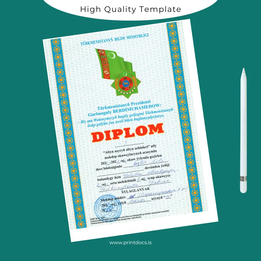 Editable and Professional Diploma Template for Turkmenistan Institutes
