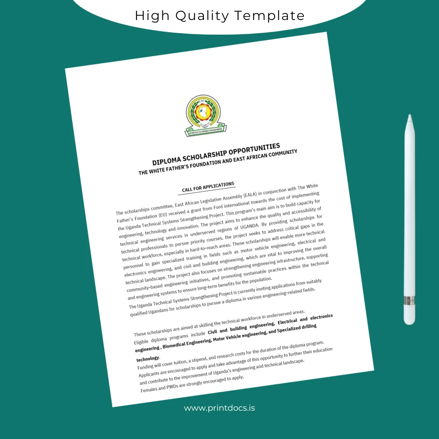 Unlock a seamless, professional solution with the Uganda White Father’s Foundation Technical Diploma Template (Word & PDF), designed to meet the highest standards for customizable degree certificates. This digital diploma download offers flexible editing capabilities, allowing you to personalize all essential details, ensuring a flawless replacement diploma or a pristine blank diploma form for diverse needs.