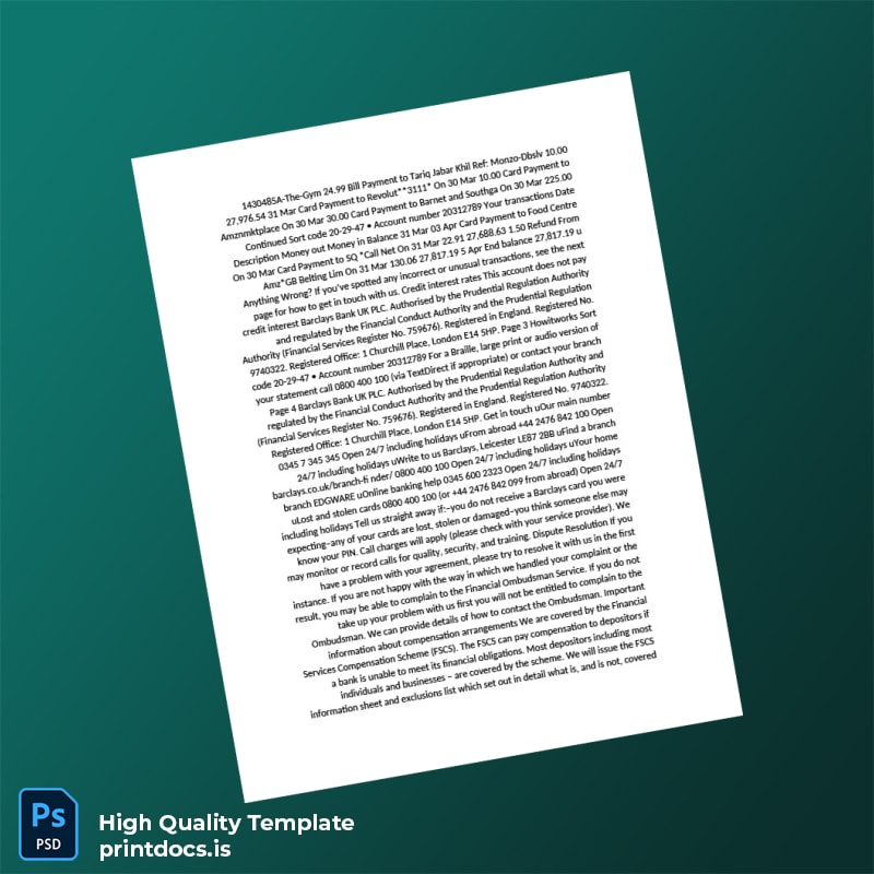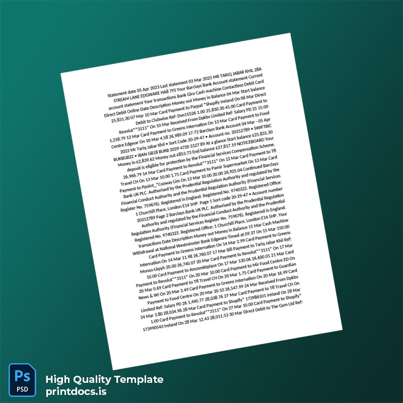 Don’t let the lack of documentation hold back your financial pursuits. Our UK Barclays Bank Account Statement Template is just a click away. Explore our range of editable bank statement templates today and experience the ease of generating professional documents from the comfort of your home. Make your financial tasks hassle-free with our meticulously designed templates!