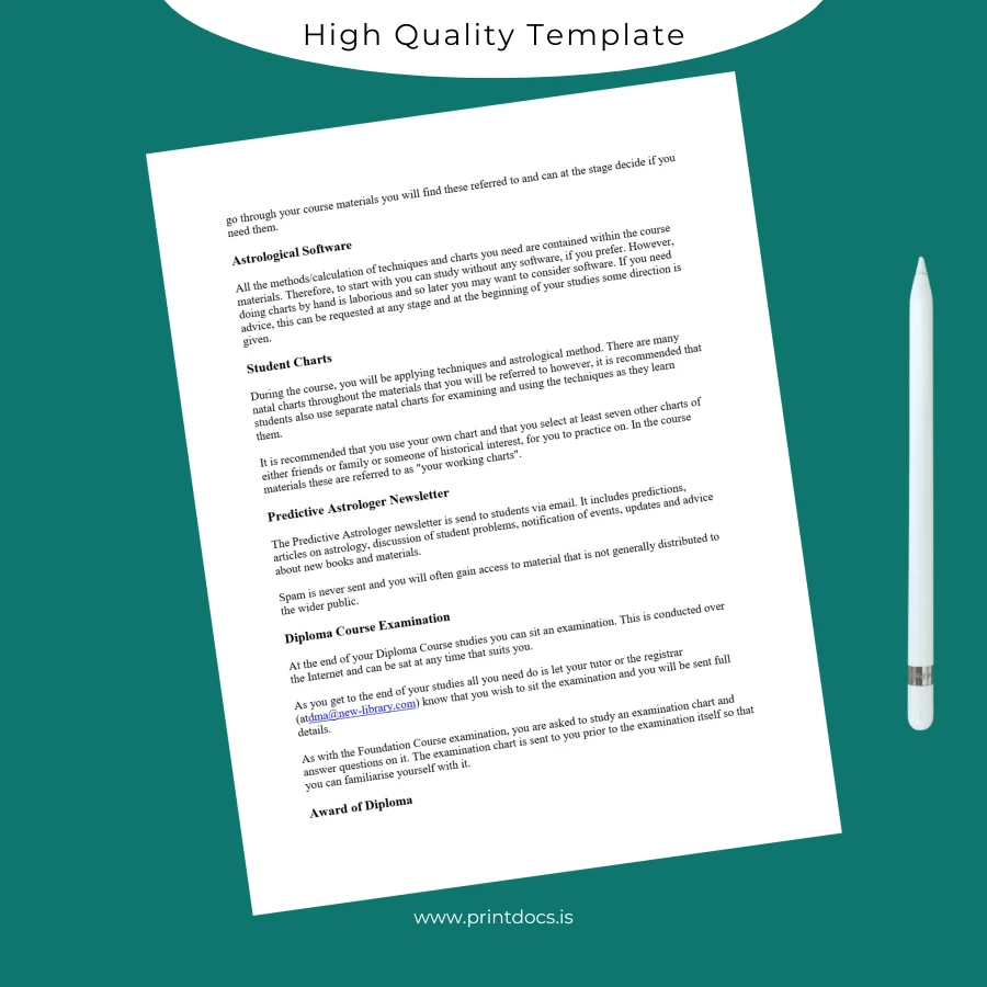 Ensure every printed copy meets top-quality standards with crisp, clear visuals that reflect the prestige expected from a medieval astrology diploma.