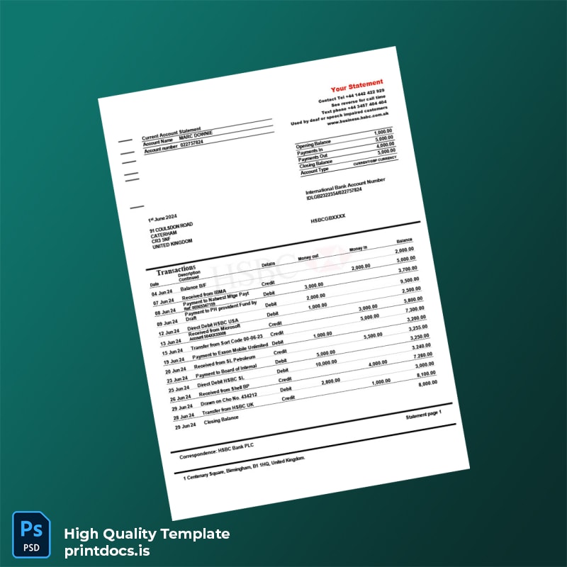 Be the first to review “UK HSBC Bank Statement Template in Word and PDF formats”