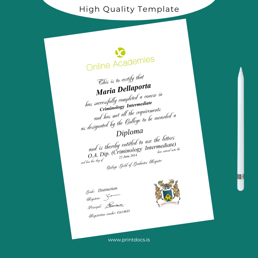 UK Online Academies Criminology Intermediate Diploma Template (Word & PDF) – Editable Diploma Template