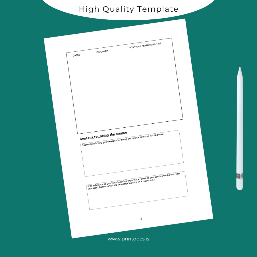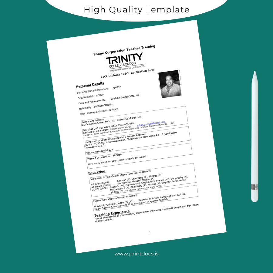 UK Trinity College London LTCL Diploma in TESOL Template – Editable, Printable Word & PDF 3 Page