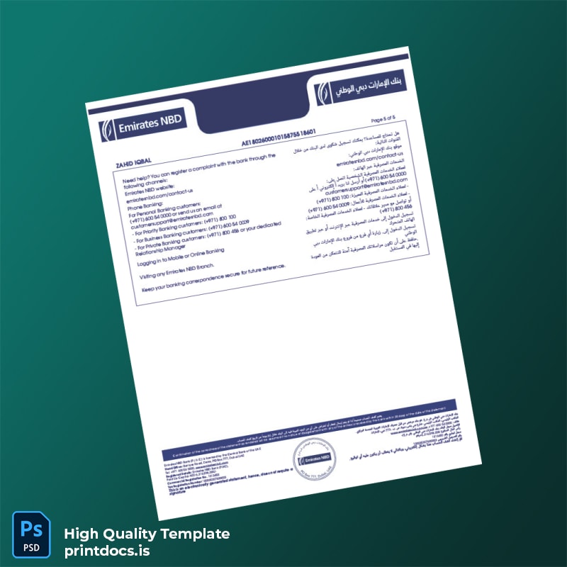 United Arab Emirates Emirates NBD Bank Statement Template in Word and PDF formats 5 page