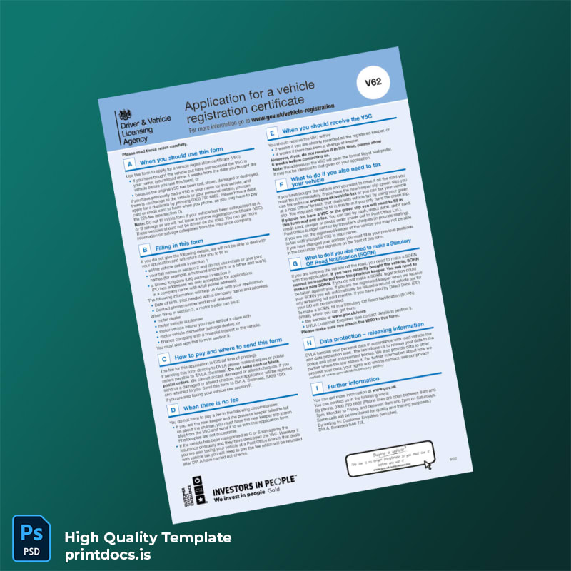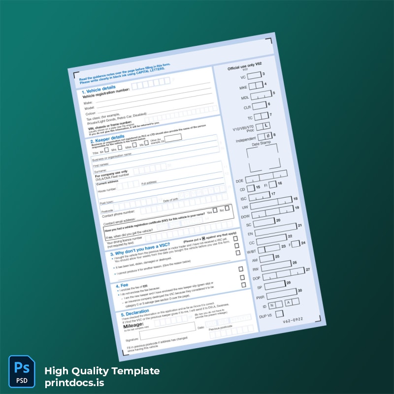 United Kingdom DVLA Registration Certificate Template (Word & PDF)