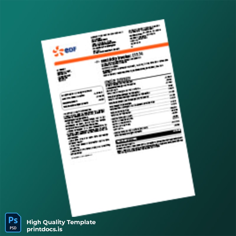 Discover a professional and customizable utility bill solution designed to streamline your documentation process. The United Kingdom EDF Energy Editable Electricity Bill Template in Word and PDF formats offers an easy-to-use and reliable way to produce an official-looking electricity bill for proof of address, billing verification, or replacement purposes.