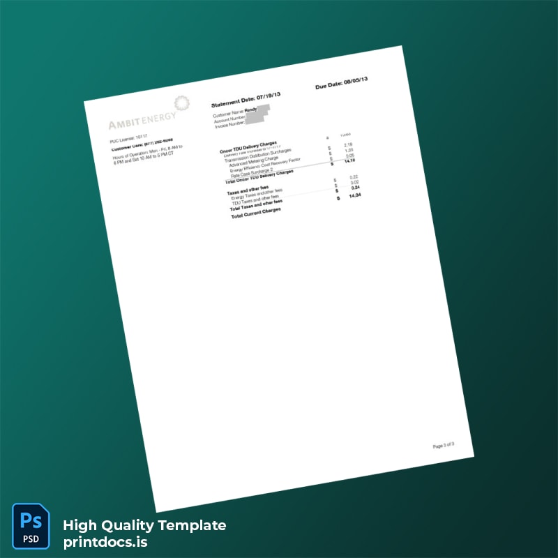 United States Ambit Energy Editable Utility Bill Template in Word and PDF formats 3 page