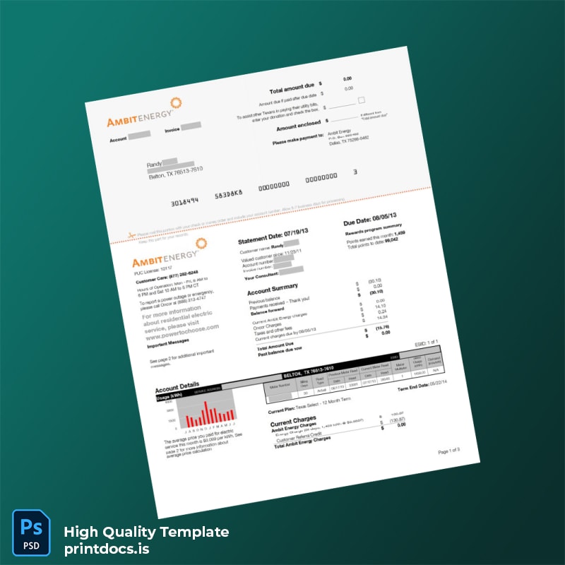 Quickly create a professional, customizable utility bill proof of address document with the United States Ambit Energy editable utility bill template, available in Word and PDF formats. Designed for ease of use and reliability, this template helps professionals needing verified proof of residence or document replacement with complete flexibility and quality.