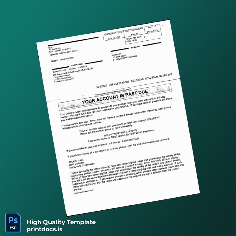- Designed with an authentic layout faithful to United States AmerenIP utility bills, enhancing credibility and acceptance.