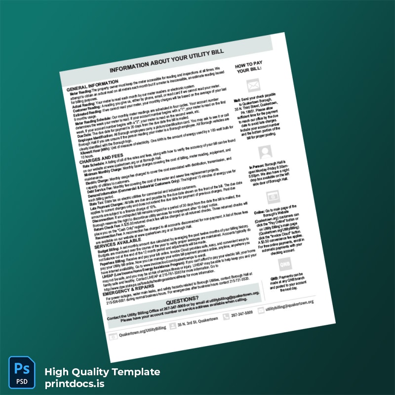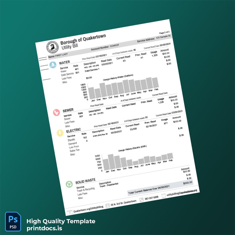 United States Borough Of Quakertown Editable Utility Bill Template: Reliable Proof of Address in Word and PDF