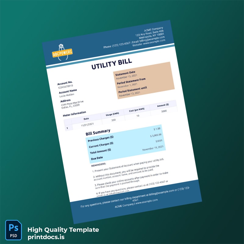 • Includes a blank utility bill template option and fillable utility bill template variants to suit diverse documentation needs.
