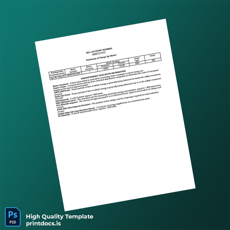 Modify all essential details including name, address, meter numbers, and billing dates with ease, ensuring fast and error-free updates every time you use this editable utility bill template word or pdf.