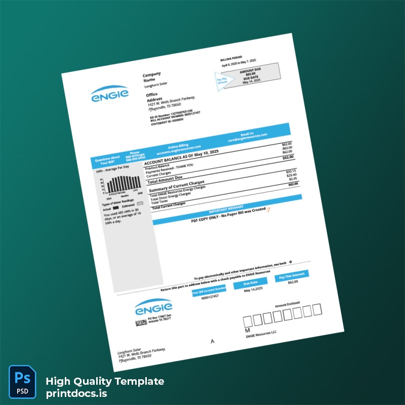 United States ENGIE Resources LLC Editable Utility Bill Template in Word and PDF Formats
