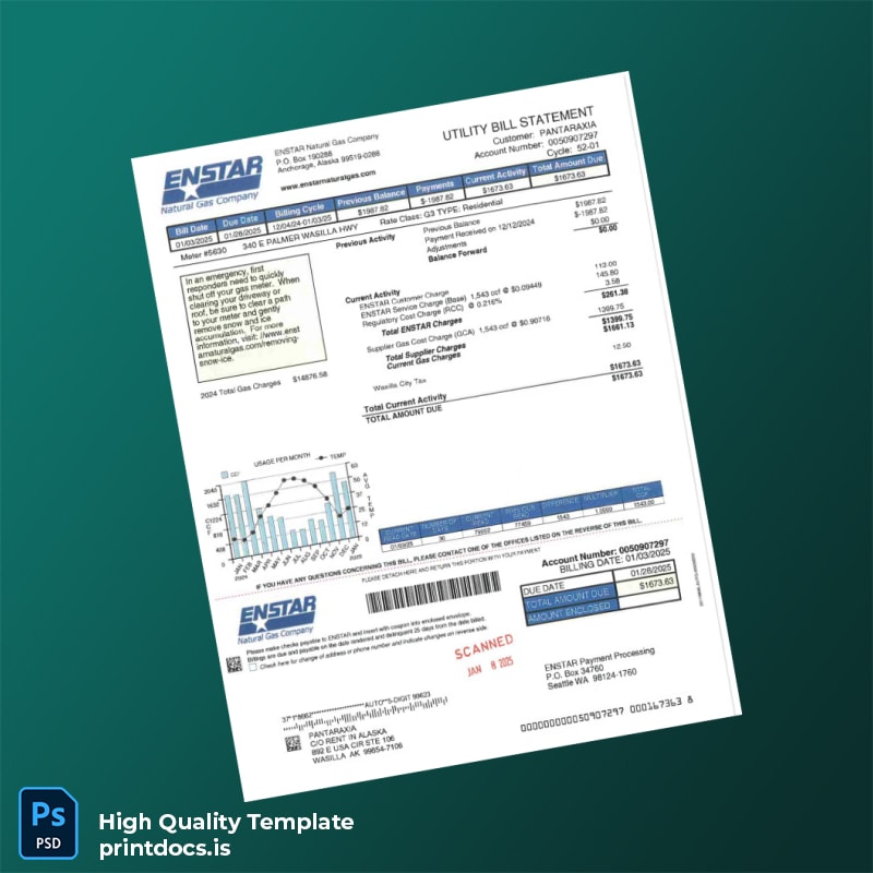 United States ENSTAR Natural Gas Company Editable Gas Bill Template Overview