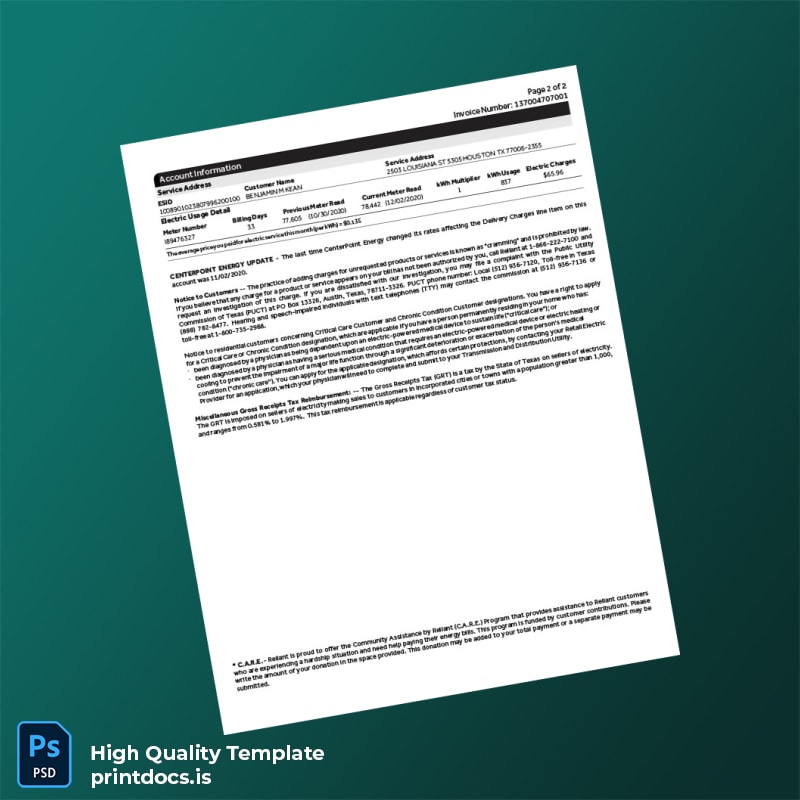 The United States Reliant Energy Retail Services LLC Editable Electricity Bill Template offers a professional, customizable solution for creating authentic-looking utility bills in both Word and PDF formats. Designed to serve global professionals who need a reliable utility bill proof of address template, this editable utility bill template pdf delivers ease of use, efficiency, and full control over your document details.