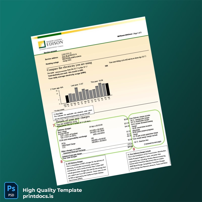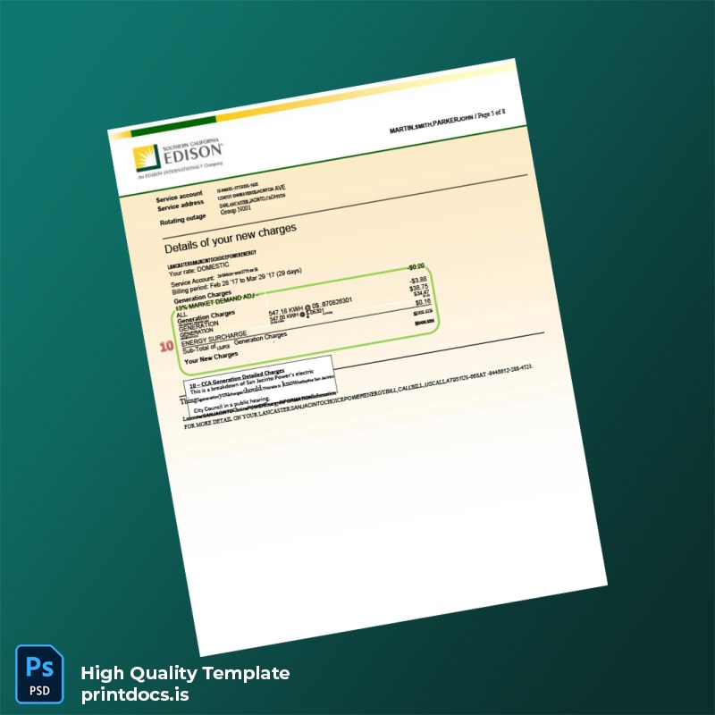 Ideal for professionals who have lost their original utility bills, need updated proof of address documents quickly, or require a replacement due to stolen or expired bills, this template serves as a critical resource. It empowers users to seamlessly generate an editable electricity bill for the Southern California Edison utility provider, streamlining verification and documentation processes.
